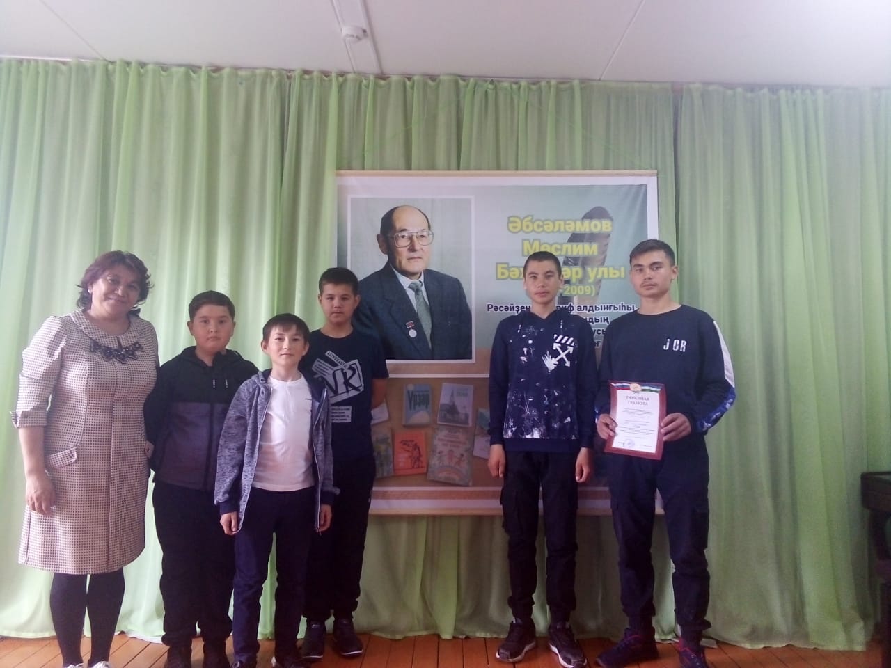 12 июнь Юлдыбай урта мәктәбендә яҡташ яҙыусыбыҙ Мөслим Бәхтиәр улы Әбсәләмовтың тыуыуына 90 йыл тулыу уңайына үткәрелгән “Тыуған ергә дан йырланы” исемле әҙәби ижад конкурсы булып үтте. Был конкурста беҙҙең мәктәп уҡыусылары ла ситтә ҡалманы. М.Әбсәләмовтың тыуған яҡ темаһына арналған "Йомағужа тирәктәре " хикәйәһе ентекләп өйрәнелде һәм уның буйынса Ҡаҙаҡҡолова Ә.Ғ. видеодәрес үткәрҙе. Ә Игликова Л.Р. етәкселегендә бер төркөм уҡыусылар ошо уҡ хикәйәне сәхнәләштереп, 3 -сө урын яуланы. Конкурста әүҙем ҡатнашҡан уҡыусыларҙы ҡотлайбыҙ, артабан да уңыштар, яңы үрҙәр теләйбеҙ.