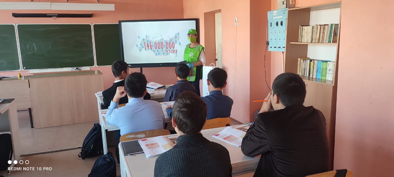 Учитель обществознания Бакиева Г.Р. рассказала ученикам, что перепись дает необходимую информацию о численности и структуре населения, его распределении по территории России, национальном и языковом составе, знакомит с социально-экономическими характеристиками, его образовательным уровнем.