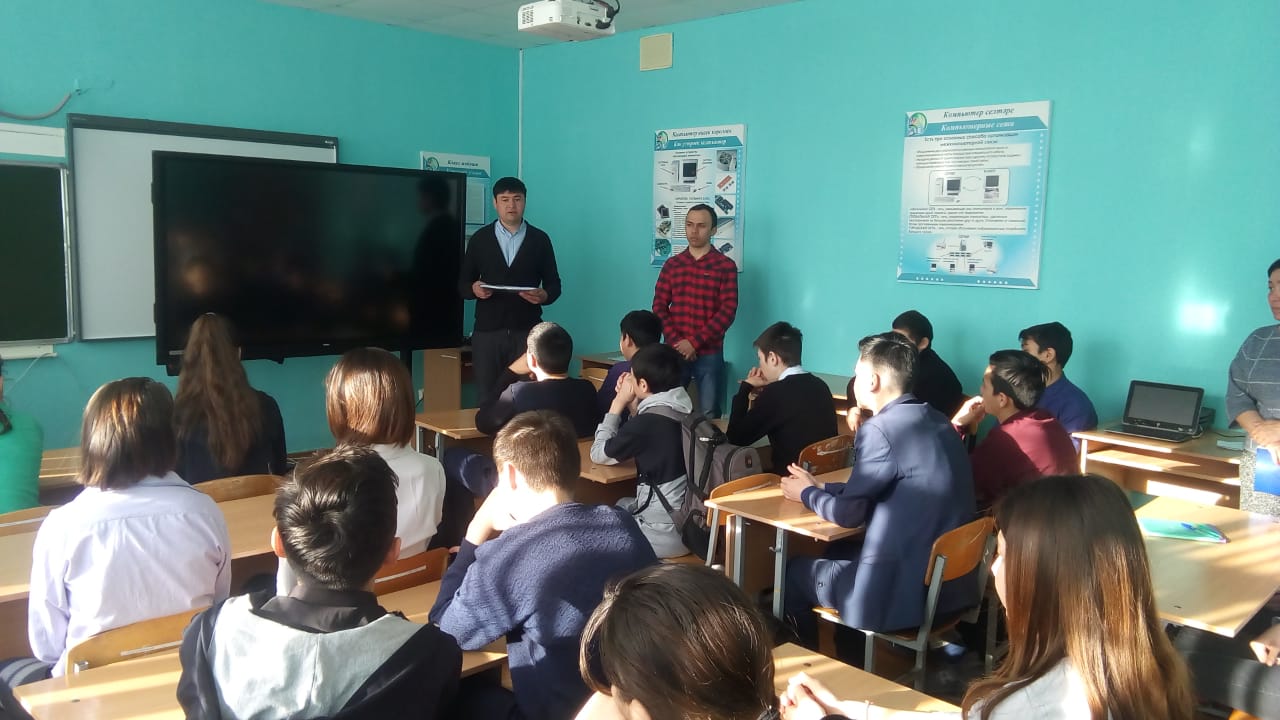 17 матра нашу школу посетили представители Акъярского горного колледжа имени И. Таймасова, зам.директора по воспитательной работе Султанов Ринат Рашитович и студент 4 курса факультета «Подземное разработка месторождений полезных ископаемых» Игибаев Айдар.