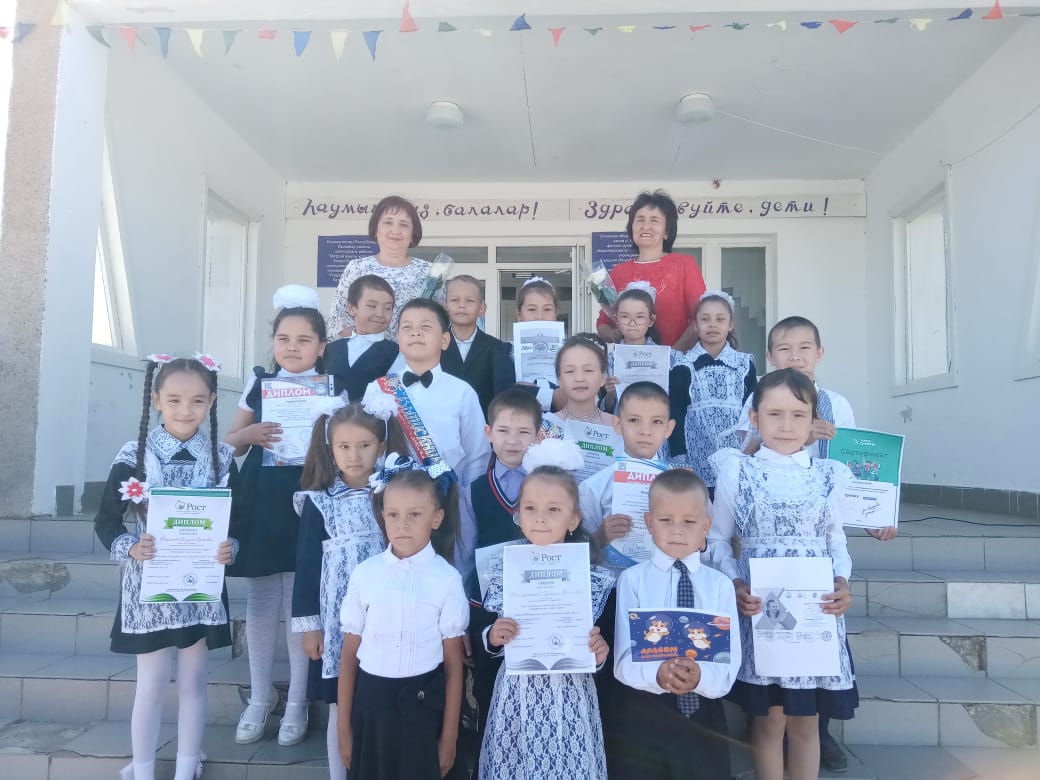 На празднике присутствовала директор школы Аккускарова Алия Рафаэлевна. Она поздравила четвероклассников с окончанием начальной школы, заверив, что школа ждет ребят после летних каникул отдохнувшими, окрепшими, загоревшими и полными стремления получать новые знания в новом статусе – ученика основной школы.