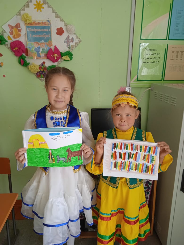 В ходе проведения Единого дня учащиеся читали стихи, играли национальные игры, слушали песни и заранее нарисовали и принесли рисунки, в котором отразили традиционные башкирские костюмы и орнаменты. Также учащиеся начальных классов пригласили в гости «Ағинәйҙәр» нашего села. Они рассказали детям об особенностях и об элементах башкирского национального костюма.