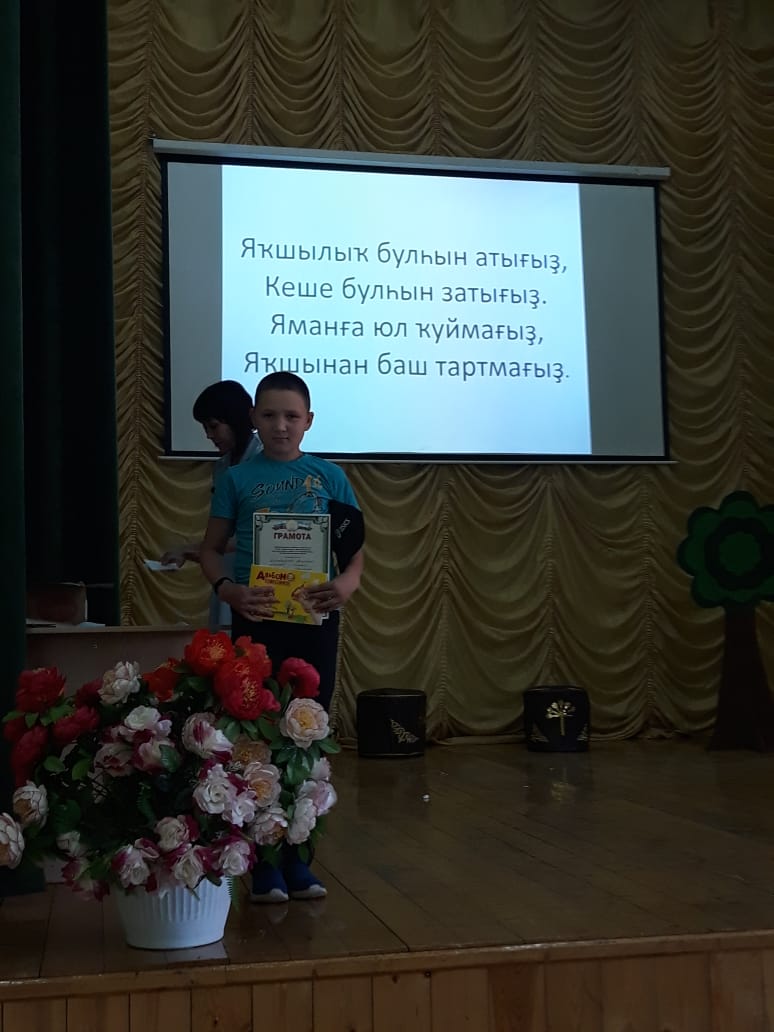 “Урал батыр” эпосын яттан һөйлуселәр араһынан Сөләймәнова Амалия 2- се урын (6-сы класс), Батыргәрәев Азамат 3 - сө урынды (5 се класс) яуланылар.